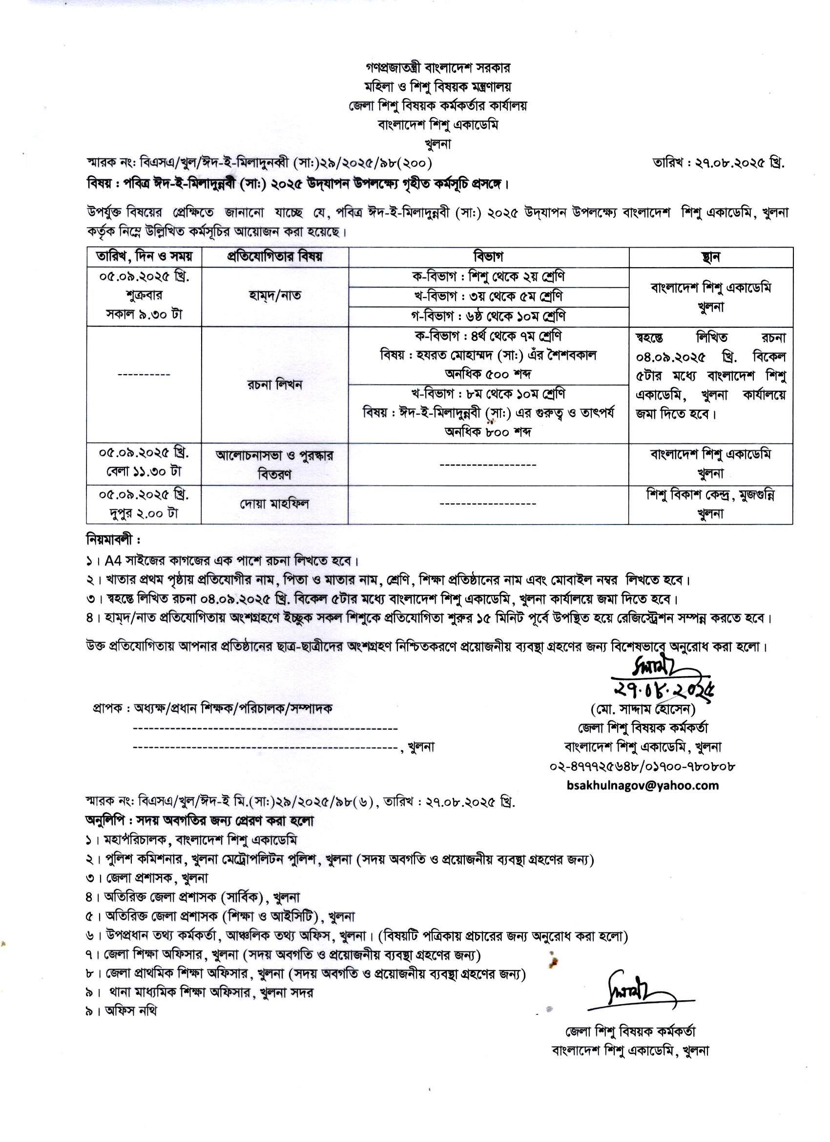 পবিত্র ঈদ-ই-মিলাদুন্নবী (সা:) ২০২৫ উদযাপন উপলক্ষ্যে গৃহীত কর্মসূচি প্রসঙ্গে
