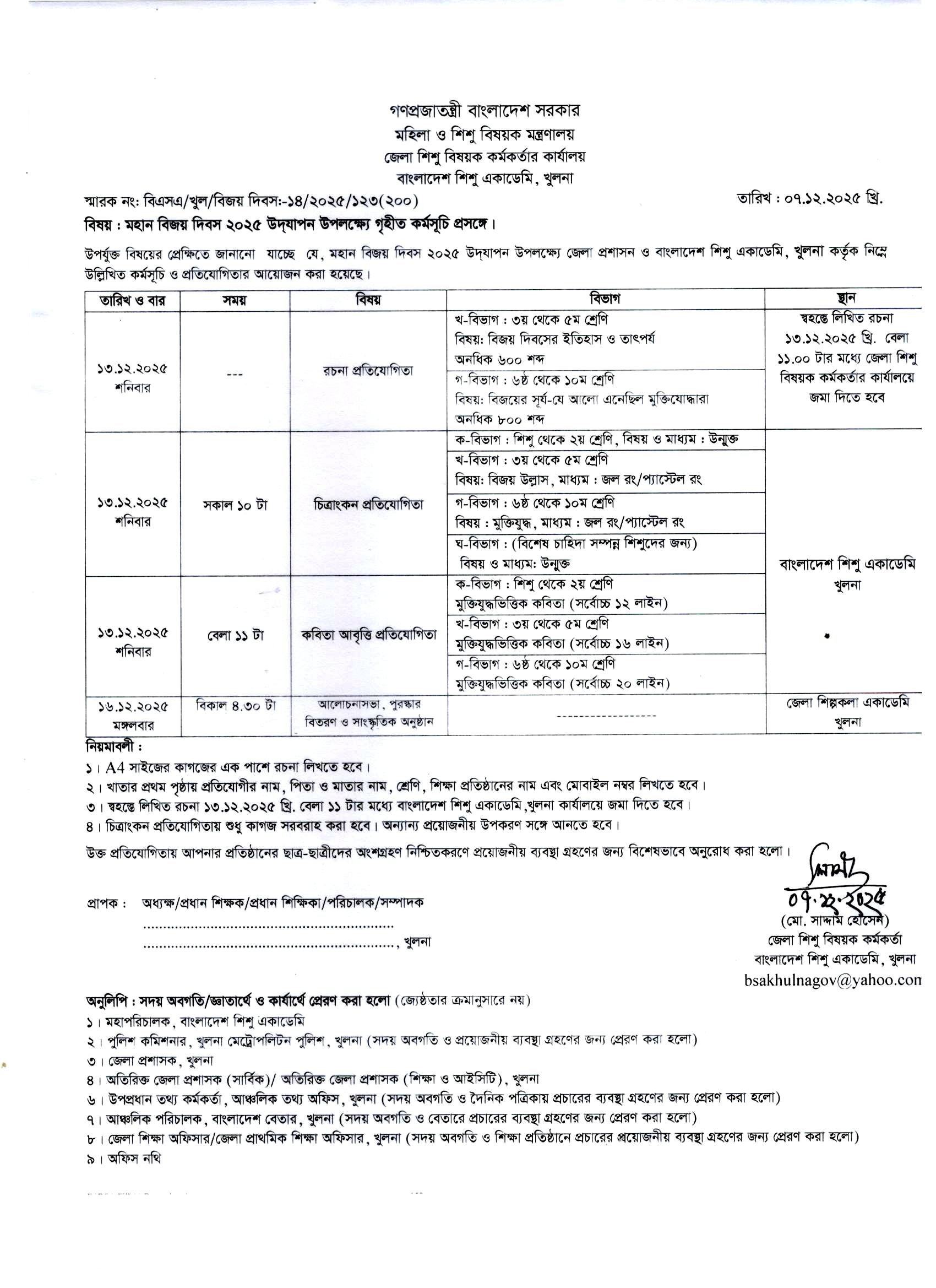 মহান বিজয় দিবস ২০২৫ উদযাপন উপলক্ষ্যে গৃহীত কর্মসূচি ।
