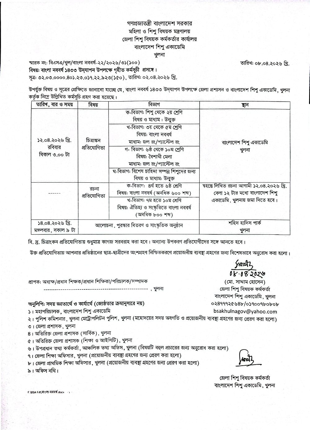 বাংলা নববর্ষ ১৪৩৩ উদযাপন উপলক্ষে গৃহীত কর্মসূচি প্রসঙ্গে